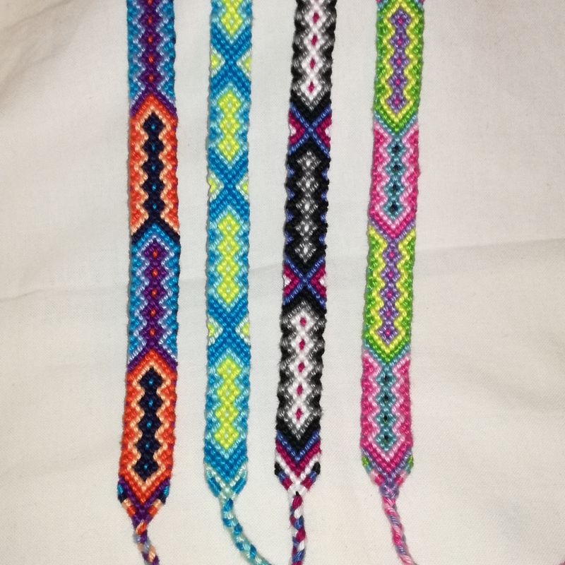Colourful friendship bracelet knitted with cotton thread. The width is 1.3cm and length is 16.5cm.