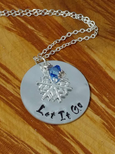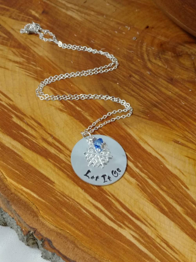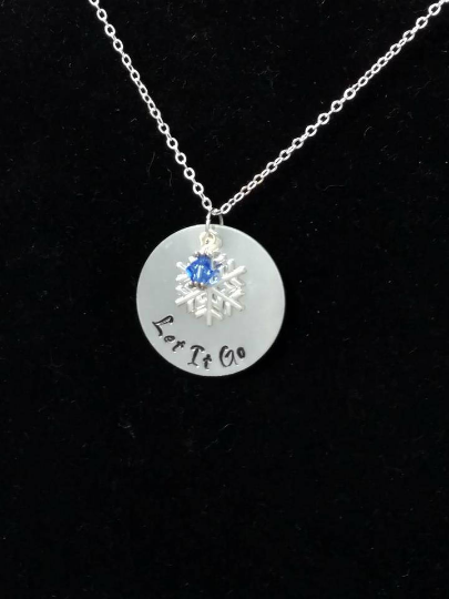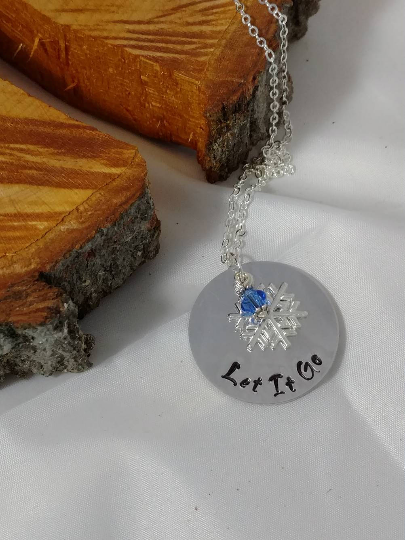 Every child loved Frozen when it came out, to continue that, we made a Frozen Inspired Necklace. A cute piece that any age would love to wear. Perfect for younger girls, Teens or Tweens. Some older women like them as well, so no matter your age, you will love this necklace. It will have a pretty Crystal and a snowflake charm included. Great as a Christmas or birthday gift, or anytime gift. ***Please specify in the notes to seller at checkout if you prefer round or oval.*** MATERIALS: This necklace is hand stamped on an aluminum (round or oval) blank, a snowflake charm, and a Swarovski crystal, jump rings, lobster clasp