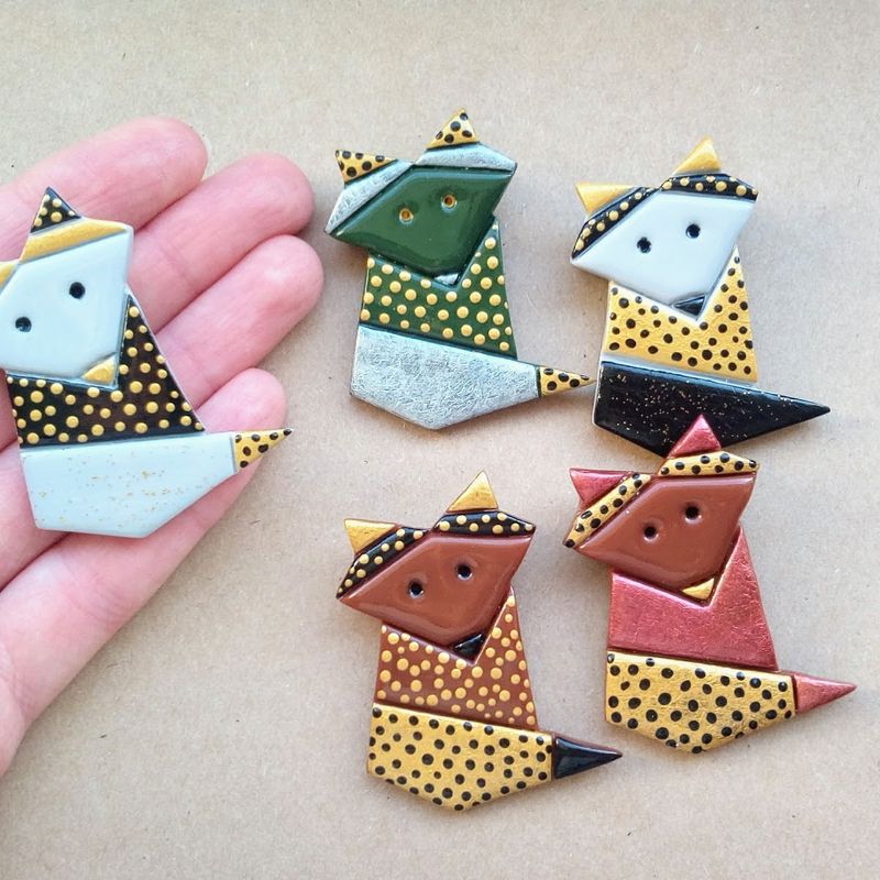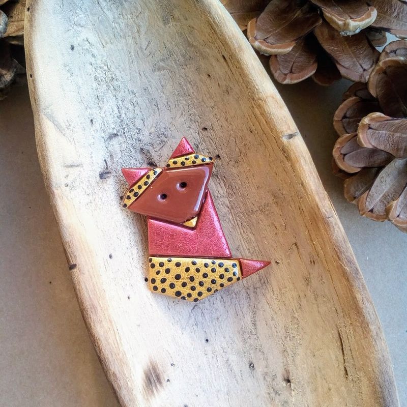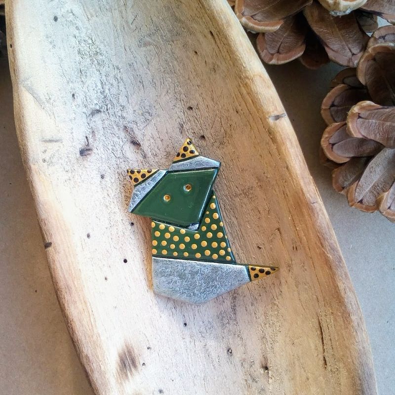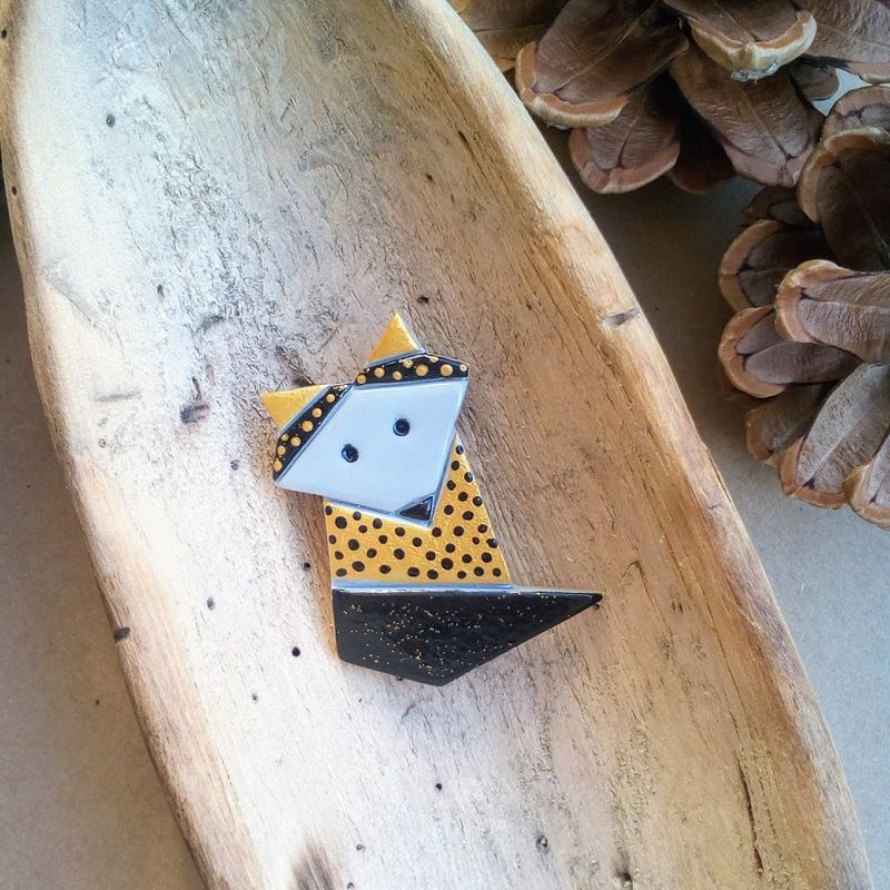 Origami style fox brooches. A perfect accessory for Your coat, hat, a lovely cardigan or even for Your backpack. Formed of strict geometric shapes these brooches will be a bright still minimalistic accent of Your outfit. If You love origami, this piece of jewelry is just for You. Just dare to be noticed! GENERAL SPECIFICATIONS OF THE BROOCHES: - 100% handmade; - materials used: polymer clay, acrylic paints, glossy varnish, metal safety clasp; - measurements: total length of the brooch ~4.7 cm (~1.85 in.), width at a widest point ~3.8 cm (~1.5 in.).