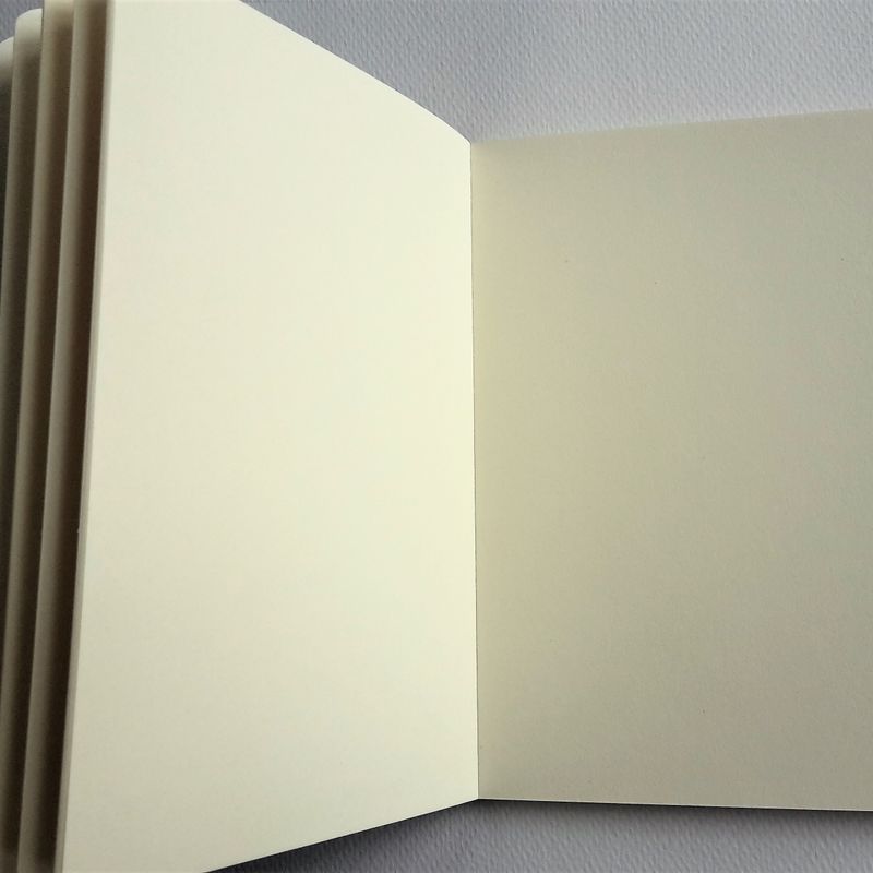 This sketchbook/notebook measures about 7 x 10cm. It has no lines and the picture on the cover is printed on high quality photo paper and then glued onto the sketchbook with highly resistable spray glue, so it won't detach.