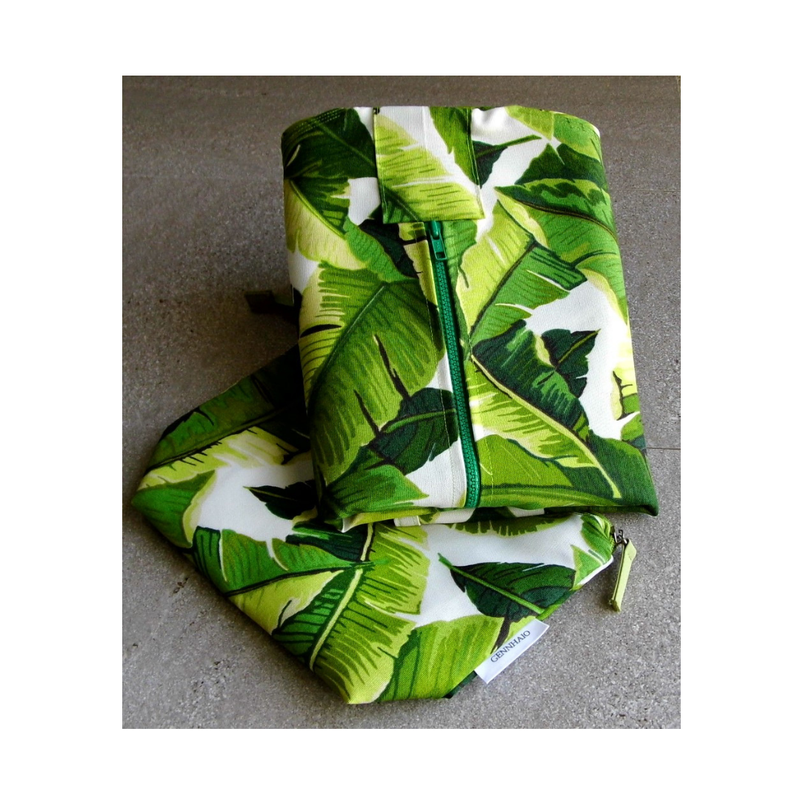 Green Garment Bag, Hanging Garment Travel Bag, Garment Bag For Women, Travel Garment Bag & Toiletry Bag, Cosmetic Bag, Leaf Design Bag