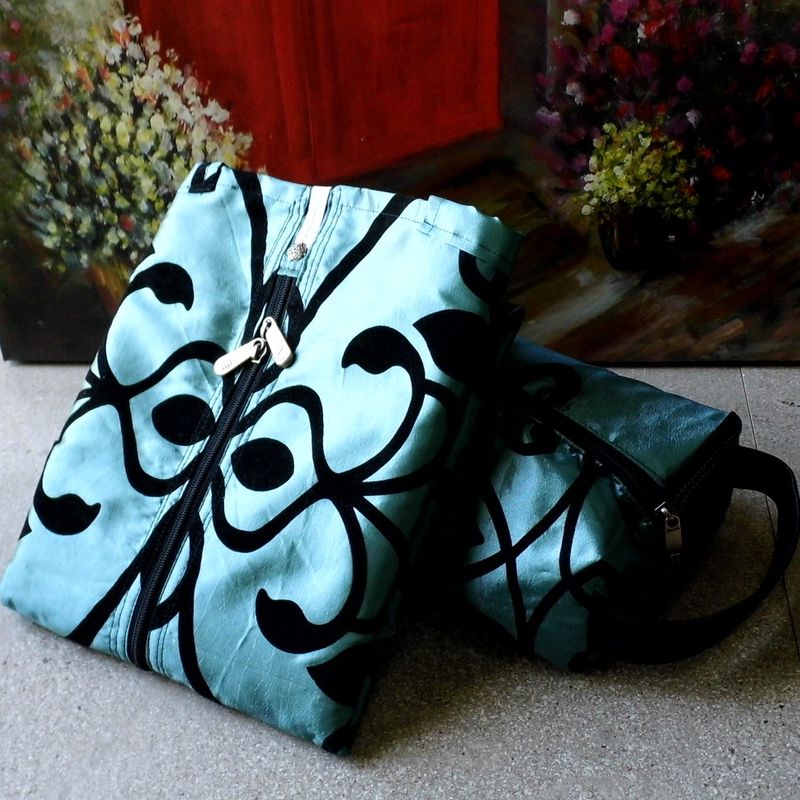 Garment Bag and Shoe Gift Set, Blue Hanging Garment Bag, Handmade from Cotton, Makes a Unique One-Of-A-Kind Gift for Women