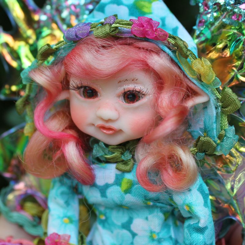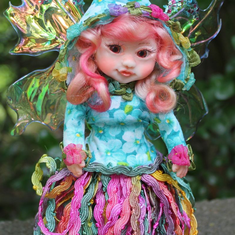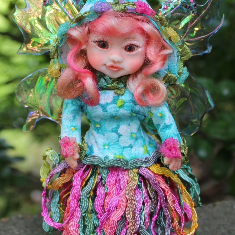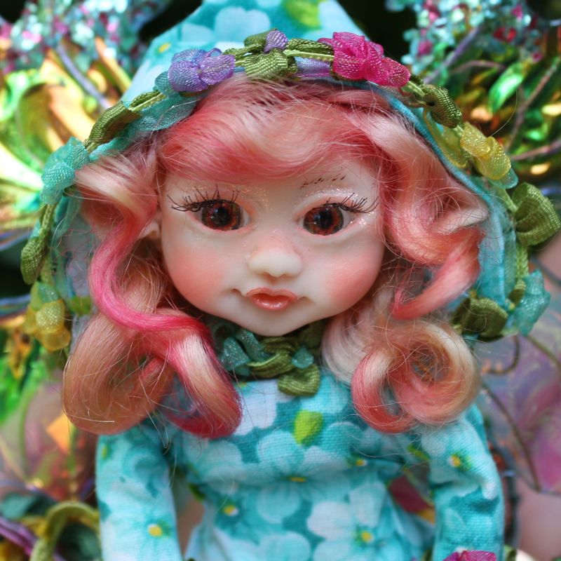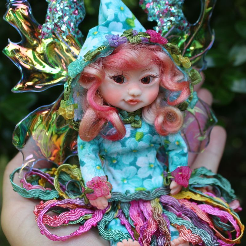 Hand Sculpted from Scratch. Glass Eyes. 5 1/2 inches tall. Comes with handmade base. Outfit and hat are not removable. Wings are removable.