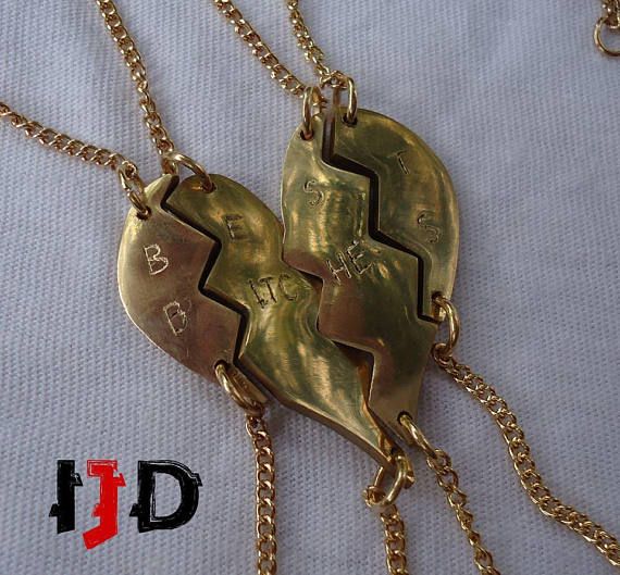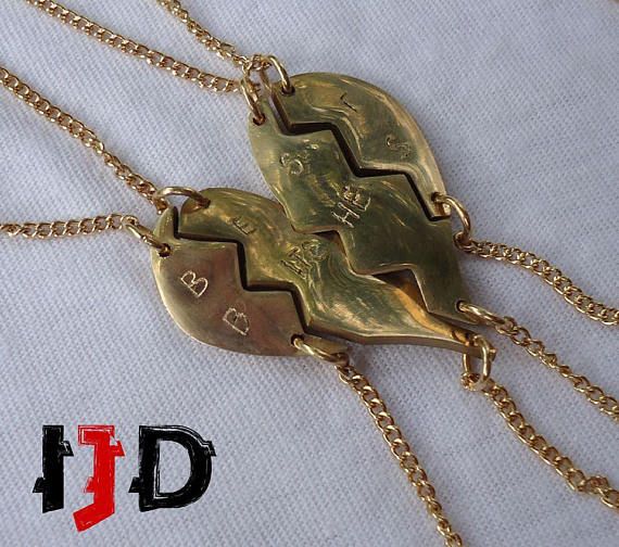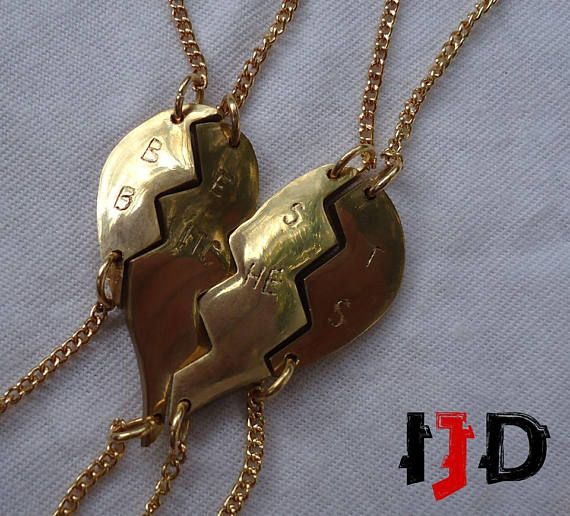 A very beautiful four parts heart pendant for friends or couples who want to mark an important occasion. This one is made out of aluminium bronze, a special metal that imitates gold, it is very durable and never loses color. Also, it is hand polished to perfection. Every part can be personalized to your desire so just write me a message about your requirements :)