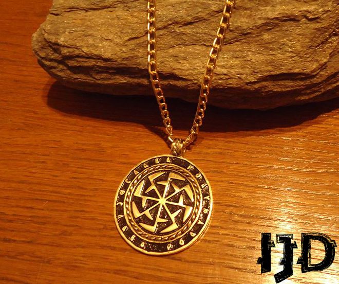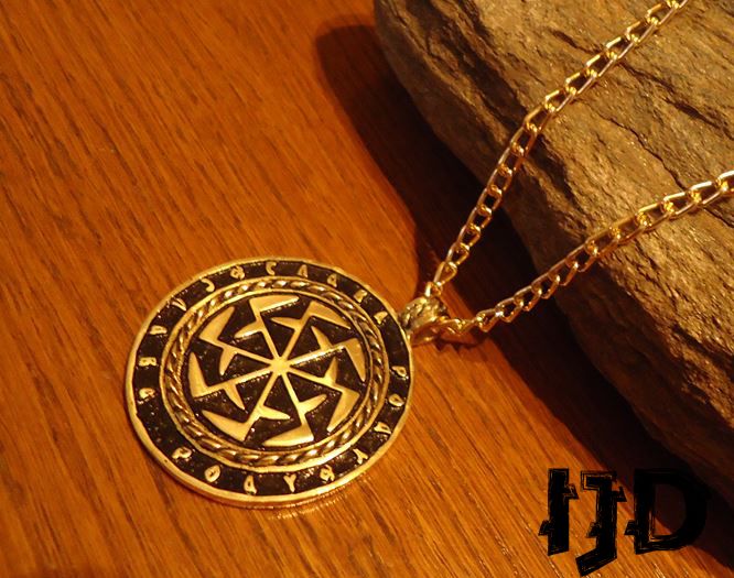 Golden Slavic Kolovrat Necklace - Slavic Kolovrat - Slavic Necklace - Tribal Necklace - Pagan Necklace - Golden Necklace - Slavic Medallion