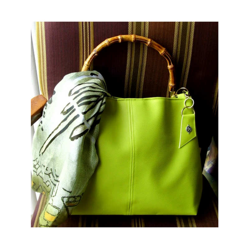 SOLD - Green hobo bag, Lime green handbag, Bamboo handle bag, Womens large purse, Vegan leather tote, Summer tote bag, Gift for her