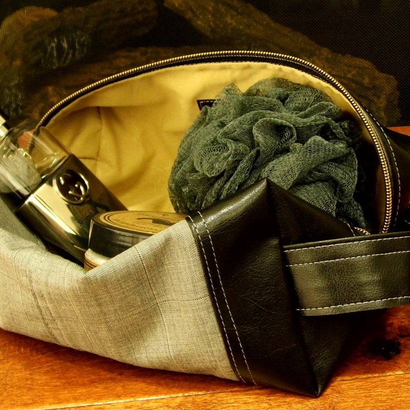 This toiletry bag is perfect for both travel and as a daily organizer at home. It’s large boxy shape has been designed by blending subtle colors of vegan leather with gently repurposed materials. There is a lot of space inside to accommodate your: shaving kit, toiletries, and much more. The zipper extends the full length of the bag, giving you easy and complete access to its interior. Approximate Size: 3" x 9½" x 6" Available from my Etsy shop: https://www.etsy.com/listing/691974322/grey-toiletry-bag-toiletry-bag-men-mens?ref=shop_home_feat_3&frs=1 Please contact me if you have any questions. www.etsy.com/shop/Gennhaio