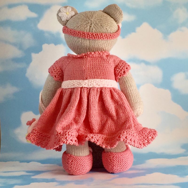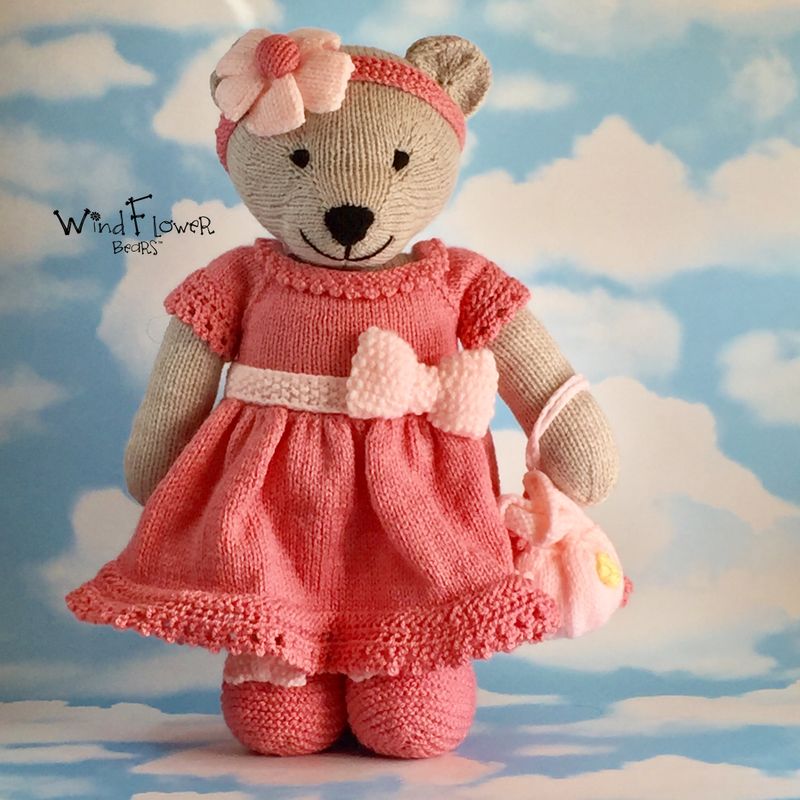 This is Windflower bear Larkspur, a handmade, one-of-a-kind bear. . Hand knitted to a high standard and comes with it's own individually designed hand knitted outfit . A special windflower is embroidered on the left ear and each bear arrives in their own protective linen bag. Comes with a card containing bear's details of birth,to which we can add recipients name and a phrase or quote of your choosing, up to 70 characters long. To make your bear extra special, we can stitch up to two initials onto the right ear, free of charge. All bears stand approximately 38cms tall and are approximately 25cms wide. Made from acrylic yarn and can be machine washed and tumble dried on a delicates cycle. Bears are filled with 100% Hi-loft polyester soft filling, which conforms to BS1425, BS5852, EN71 and are CE marked. PLEASE NOTE; Due to the nature of wool and the tendency of young children to suck their toys, children under 3yrs should be supervised. .**FREE UK shipping and reduced rates for the rest of the world.*