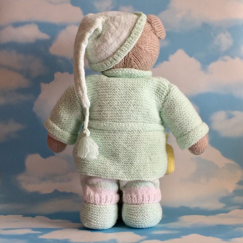 This is Windflower bear Blanketflower, a handmade, one-of-a-kind bear. Hand knitted to a high standard and comes with it's own individually designed hand knitted outfit. A special windflower is embroidered on the left ear and each bear arrives in their own protective linen bag. Comes with a card containing bear's details of birth,to which we can add recipients name and a phrase or quote of your choosing, up to 70 characters long. To make your bear extra special, we can stitch up to two initials onto the right ear, free of charge. All bears stand approximately 38 cms tall and are approximately 25 cms wide. Made from acrylic yarn and can be machine washed and tumble dried on a delicates cycle. Bears are filled with 100% Hi-loft polyester soft filling, which conforms to BS1425, BS5852, EN71 and are CE marked. PLEASE NOTE; Due to the nature of wool and the tendency of young children to suck their toys, children under 3 yrs should be supervised. **PRICE INCLUDES - Free UK shipping and reduced rates to the rest of the world.**