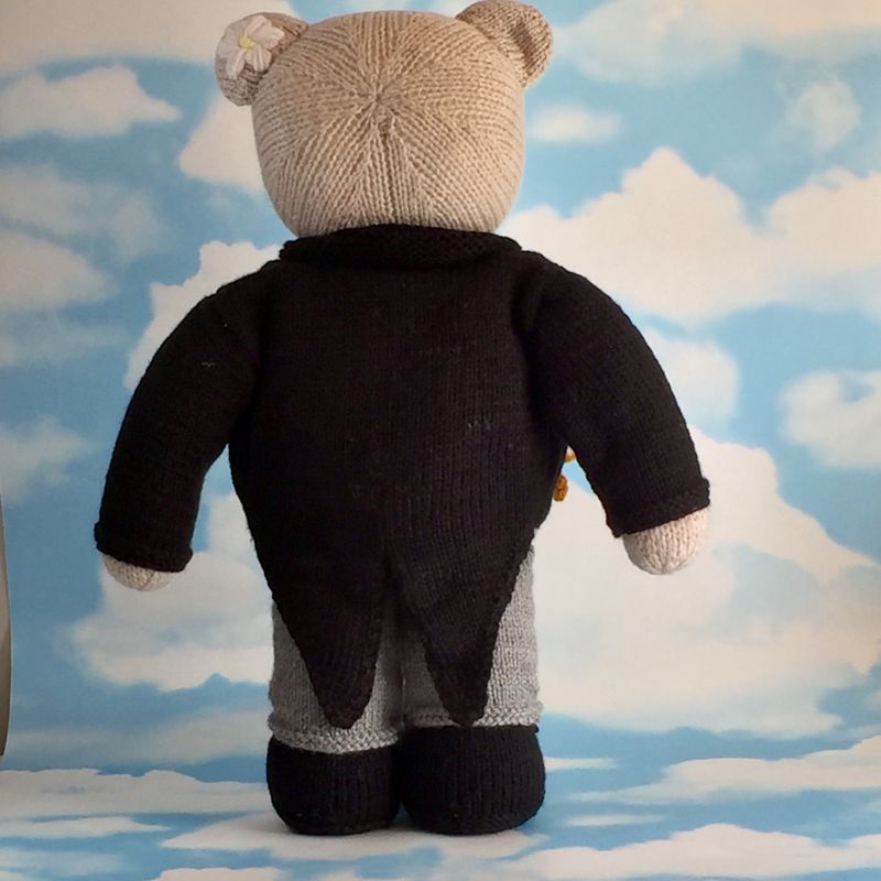 This is Windflower bear Burdock, a handmade, one-of-a-kind bear. Hand knitted to a high standard and comes with it's own individually designed hand knitted outfit. A special windflower is embroidered on the left ear and each bear arrives in their own protective linen bag. Comes with a card containing bear's details of birth,to which we can add recipients name and a phrase or quote of your choosing, up to 70 characters long. To make your bear extra special, we can stitch up to two initials onto the right ear, free of charge. All bears stand approximately 38 cms tall and are approximately 25 cms wide. Made from acrylic yarn and can be machine washed and tumble dried on a delicates cycle. Bears are filled with 100% Hi-loft polyester soft filling, which conforms to BS1425, BS5852, EN71 and are CE marked. PLEASE NOTE; Due to the nature of wool and the tendency of young children to suck their toys, children under 3 yrs should be supervised. **PRICE INCLUDES - Free UK shipping and reduced rates to the rest of the world.**