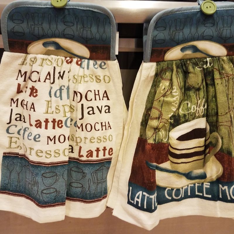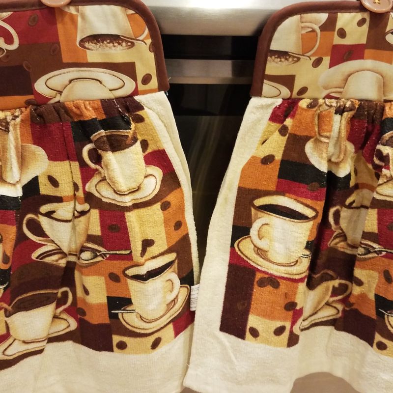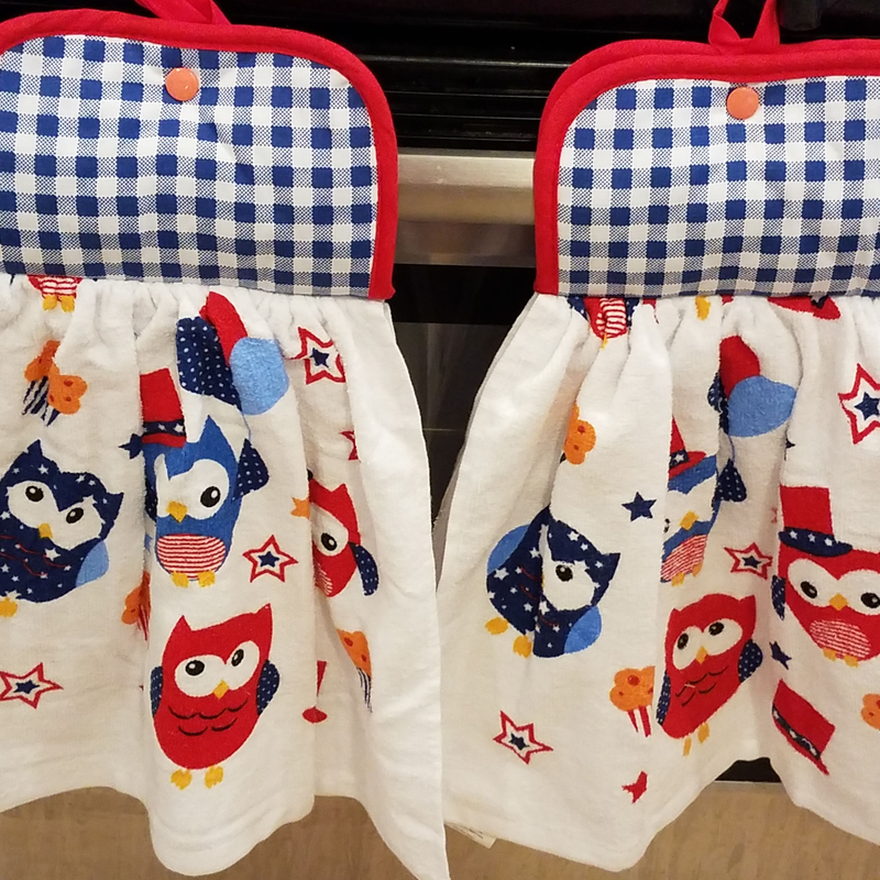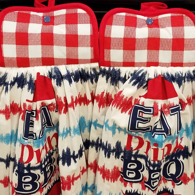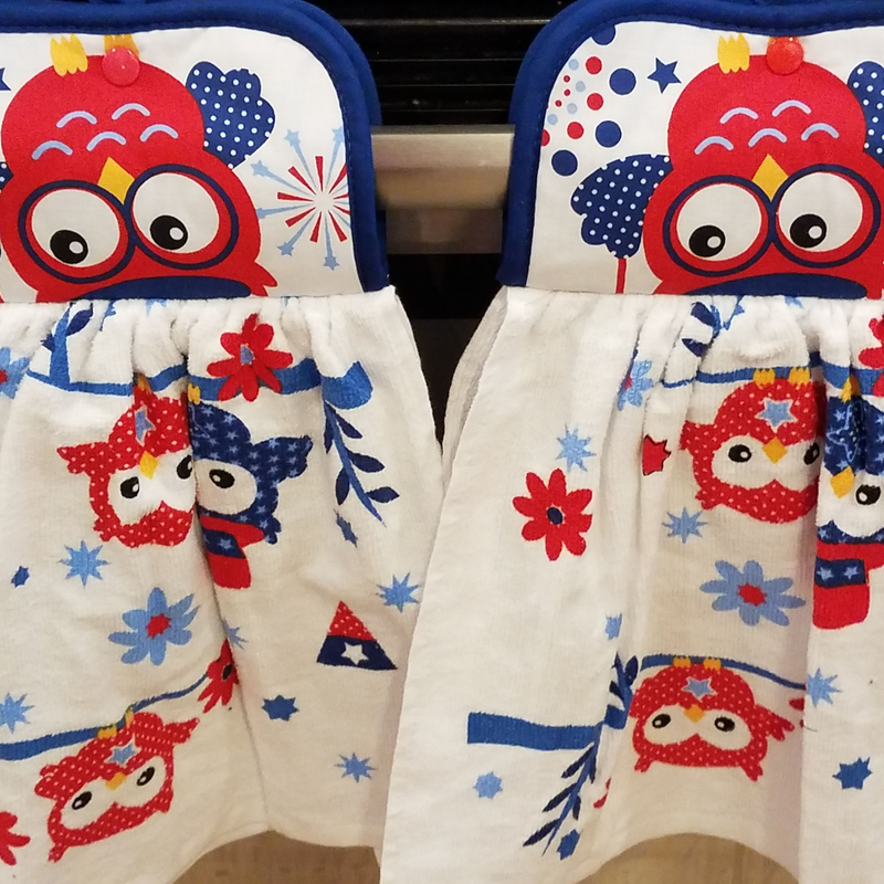 Hanging potholder towel sets. Potholders are sewn onto the towels creating a functional hanging potholder and towel combo. Comes as a set $10.00 plus shipping and handling.