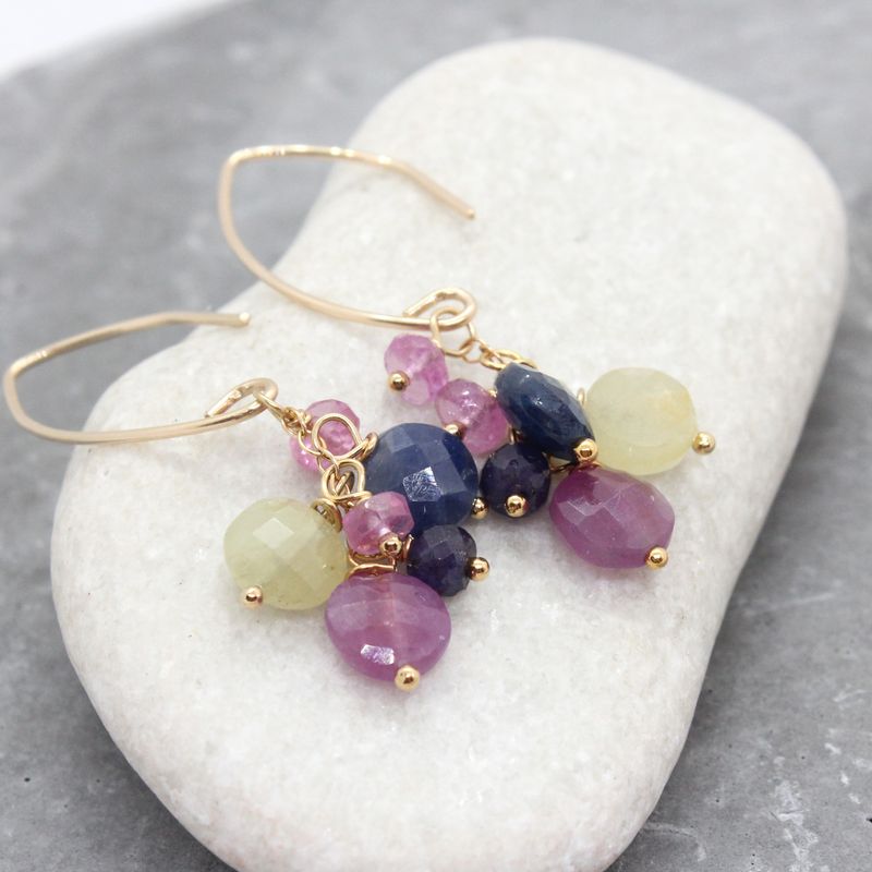 Sapphire Cluster Earrings Gold Filled September Birthstone Earrings Colorful Gemstone Jewelry Elegant Sapphire Jewelry