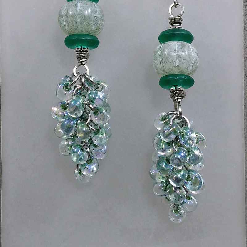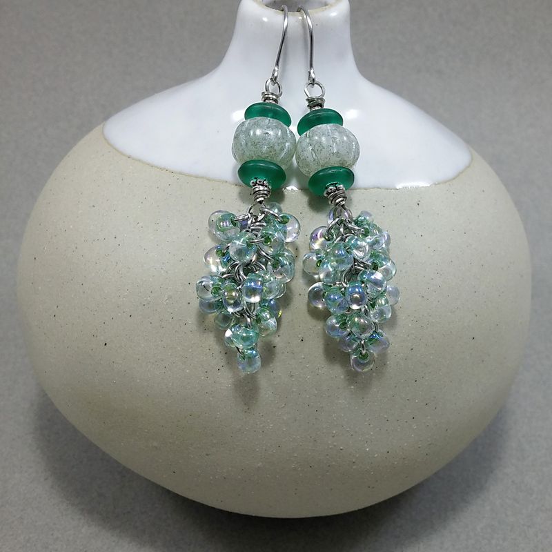 Swarovski Crystal Crisolite & Lampwork in Stainless Steel Chain Mail Earrings