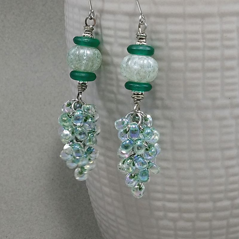 For these gorgeous gentle earrings I used very beautiful Japanese 5x4mm drops in sweet luster "dreamy" green and all Stainless Steel sturdy jump rings 4mm and 5mm , Wrapper with Stainless wire 2.5" from the top of the Surgical Steel ear wires. So beautiful!