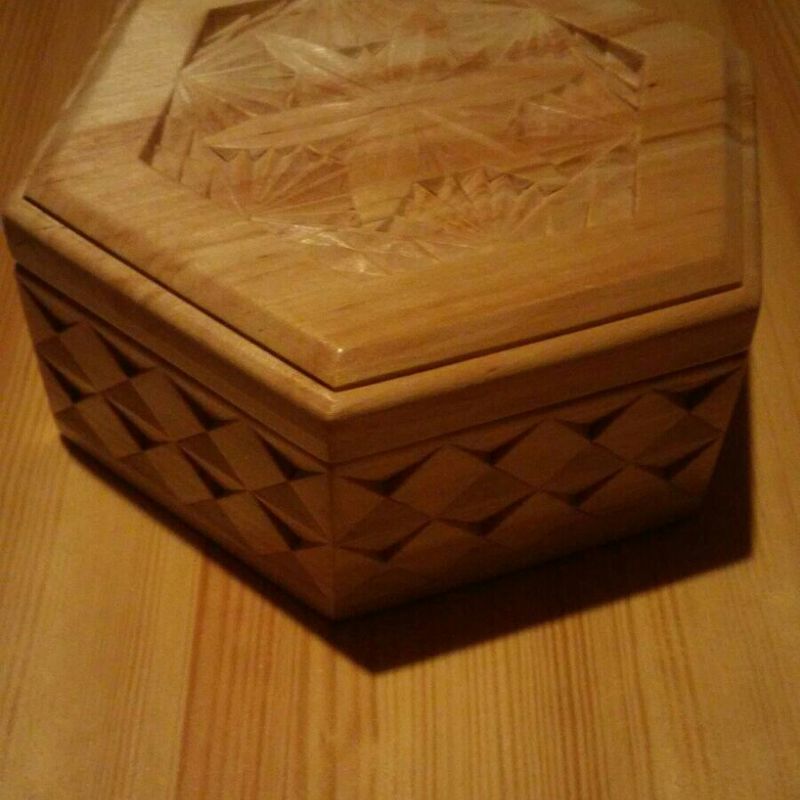 The box is handmade.The luxurious carvings wood is the master's original work.The box can hold jewelry or sewing accessories. The box is a great gift for a wedding or birthday. length:16cm width 16 cm Height: 6 cm