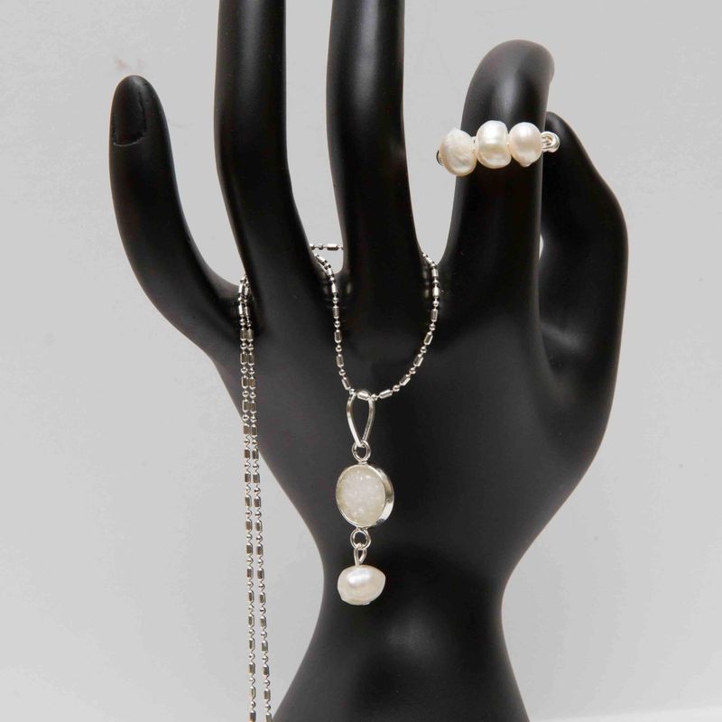 Freshwater pearls Druzy earrings Silver jewelry