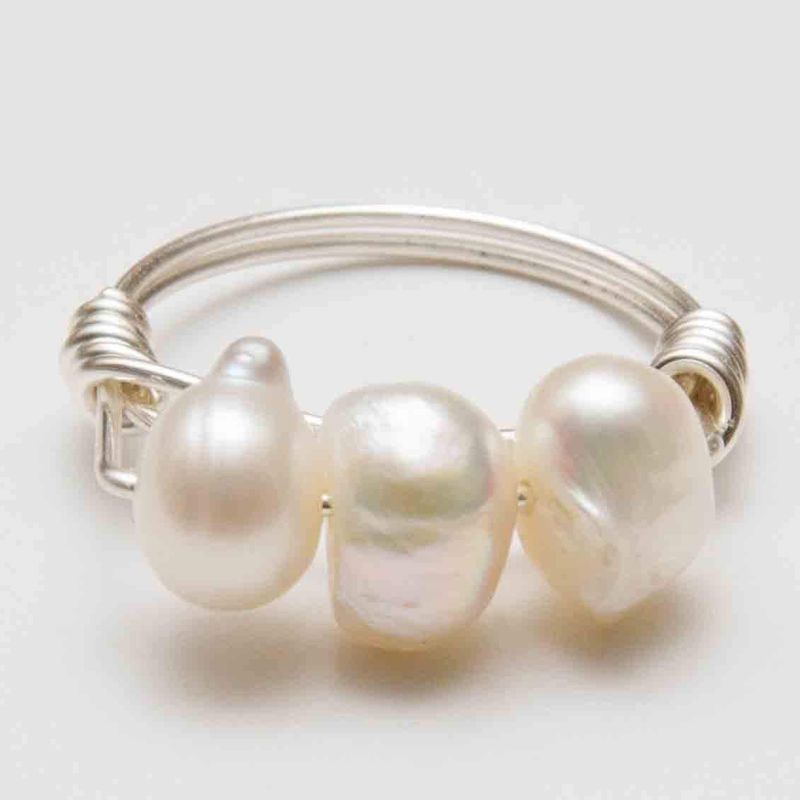 silver wire crochet pearl choker
