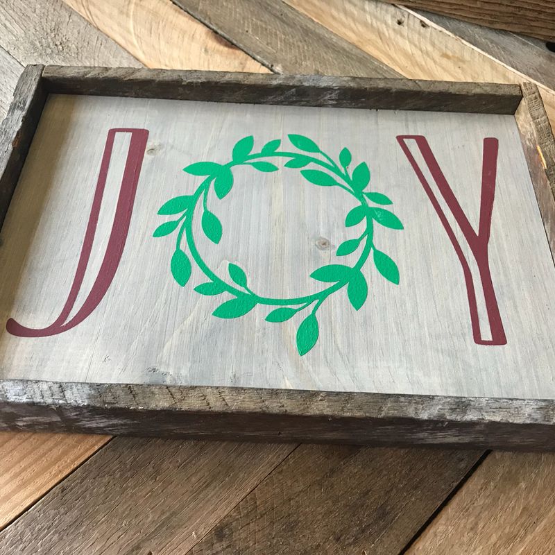 Joy Sign! These signs are hand crafted and one of a kind. Perfect Christmas gift for a house warming, wedding or hostess gift, shelf decoration or just a unique way to say Thank you. Fun, festive and unique....perfect sign to give as a gift or keep for yourself 🎄🎅🤶This cute little sign will add that special farmhouse Christmas touch to an entryway, bedroom, living room or any room of the house. The possibilities are endless! Measures approximately 12 inches x 8 1/2 inches. This beautiful country Christmas sign beautiful has a stained light gray background with the word “Joy painted in deep burgundy and holiday green. Beautiful hand crafted and one of a kind sign. Perfect gift for a house warming, girls night, wedding or hostess gift, shelf decoration or just a unique way to say Thank you. Please note, because these signs are handmade, each one may vary slightly and will provide you with a very unique item. Please feel free to contact us with any questions. Thank you for visiting The Country Cowshed! Follow us on Facebook for updates, specials and more photos: www.facebook.com/thecountrycowshed For more vintage and handcrafted items, you can check out our Etsy listings here: www.etsy.com/shop/thecountrycowshed