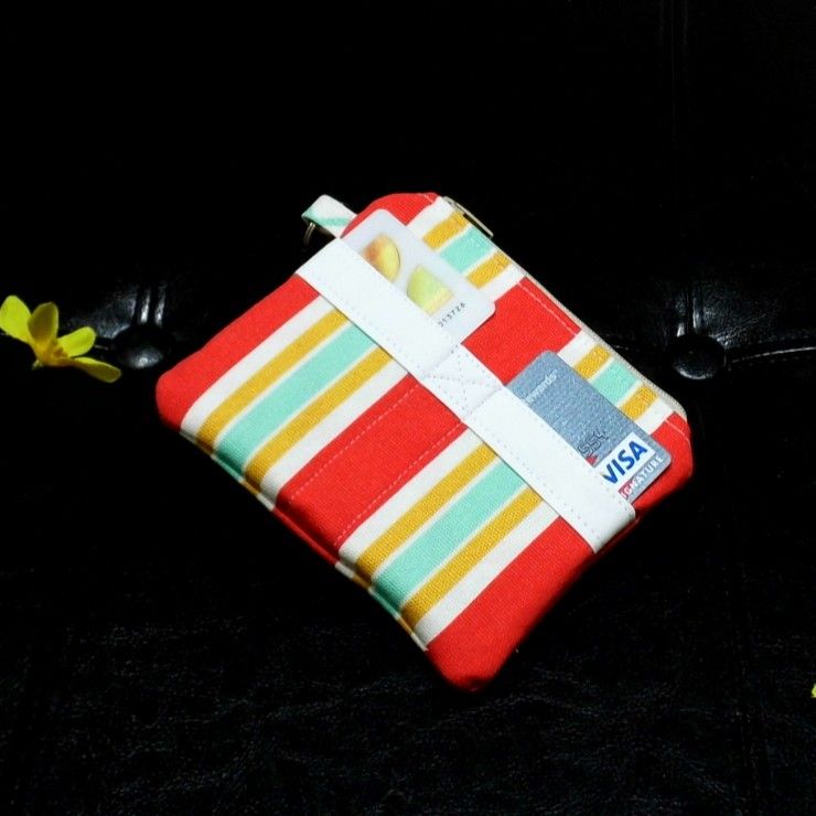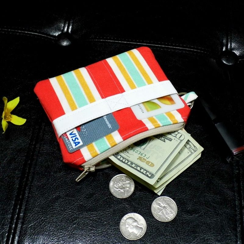 Key Fob Wallet, Small Minimalist Fabric Wallet, Red Small Pouch, Keychain Wallet Pouch, Keychain Card Holder, Earbud Case