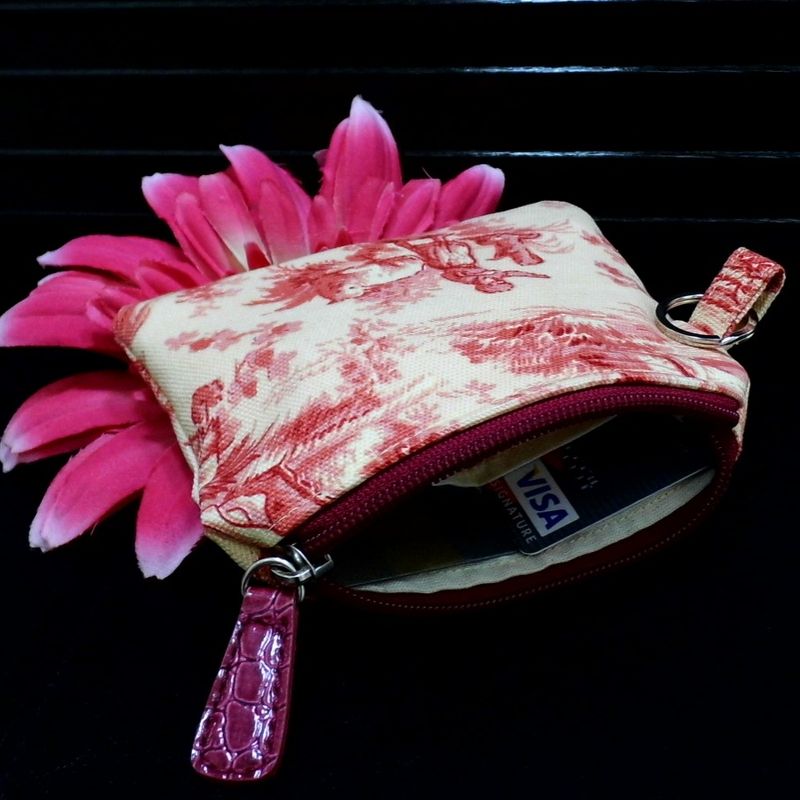 Key Fob Wallet, Small Minimalist Fabric Wallet, Red Small Pouch, Keychain Wallet Pouch, Keychain Card Holder, Earbud Case