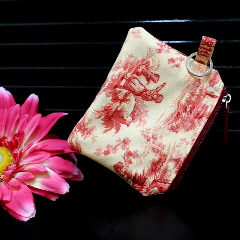 SOLD - Key Fob Wallet, Small Wallet, Minimalist Fabric Wallet, Pink Small Pouch, Keychain Wallet Pouch, Keychain Card Holder, Earbud Case