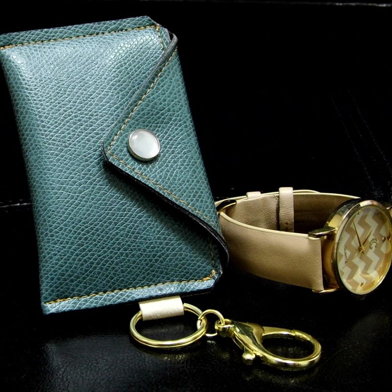 Store your ID card or credit cards, clip this mini wallet to your keys or handbag. Featuring a gold-tone claps and a mother of pearl snap closure. This small vegan keychain wallet is a great gift to give a friend or as a treat for yourself. Approximate Size: 4" x 2.25” Available Here: https://www.etsy.com/listing/705622011/keychain-wallet-key-fob-wallet-small?ref=shop_home_active_2&frs=1 Please contact me if you have any questions. www.etsy.com/shop/Gennhaio