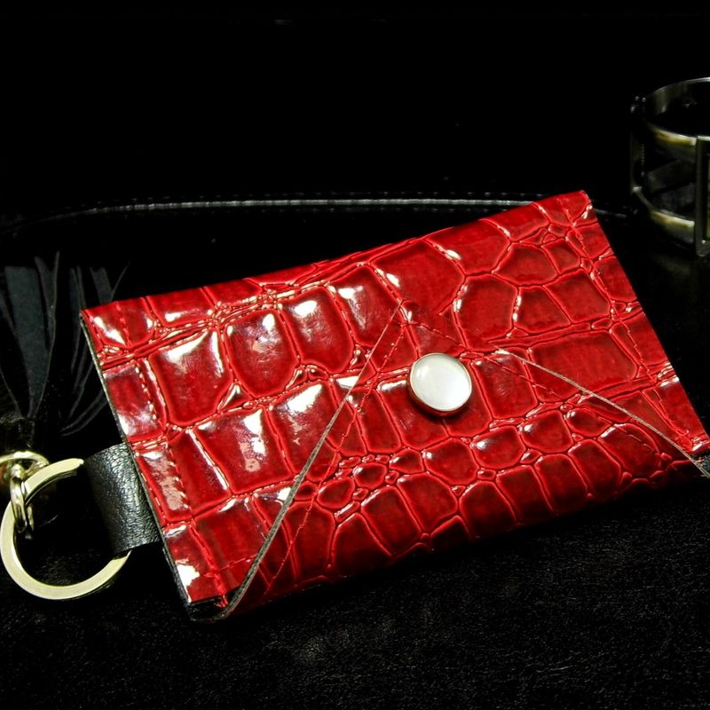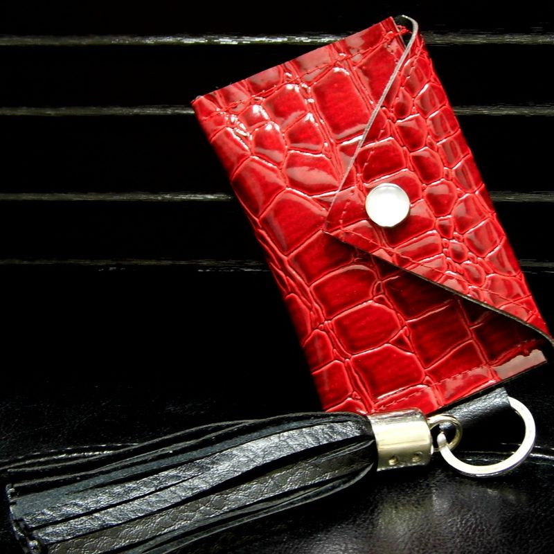 Keychain Wallet, Keyfob Wallet, Small Vegan Wallet, Red Card Holder, Keychain Pouch, Business Card Holder, Wallet Keyfob