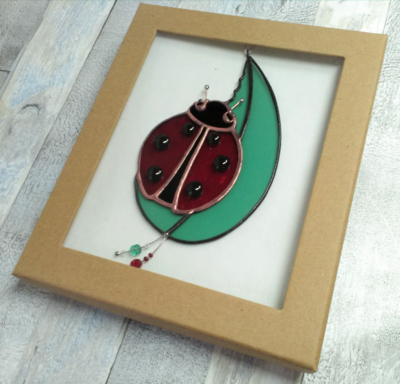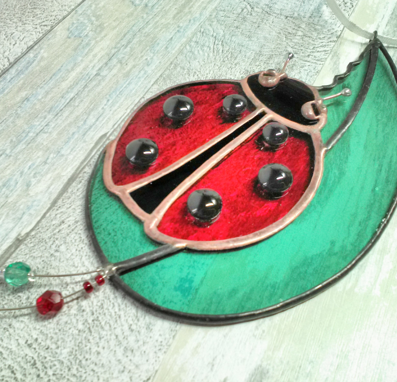 Ladybird Suncatcher, Ladybug Insect Nibbling Leaf, Bug and Leaf Art, Window Decoration, Home Decor Ornament
