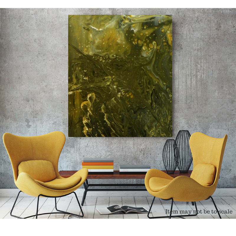 Enhance your home or office with this original* stunning vibrant gold abstract work of art. Rendered in acrylic and metallic paints. * Only one produced! *** ABOUT THIS PAINTING *** ~ Size: 24” x 36” x 1.5” ~ Medium: Acrylic, Gloss finish. ~ Hand painted. ~ Certificate included. ~ Main Colors: Antique Grey, Midnight Black, Old Gold, Metallic Silver, Metallic Gold, Eggshell White, Bright White. Available Here: https://www.etsy.com/listing/682559633/large-abstract-acrylic-painting?ref=related-2&frs=1