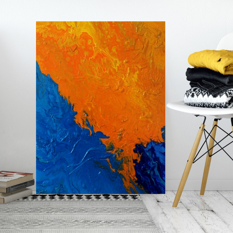 Large Acrylic Pour Painting, Orange Textured Painting, Large Original Painting on Canvas, Abstract Art On 30 x 40 inches
