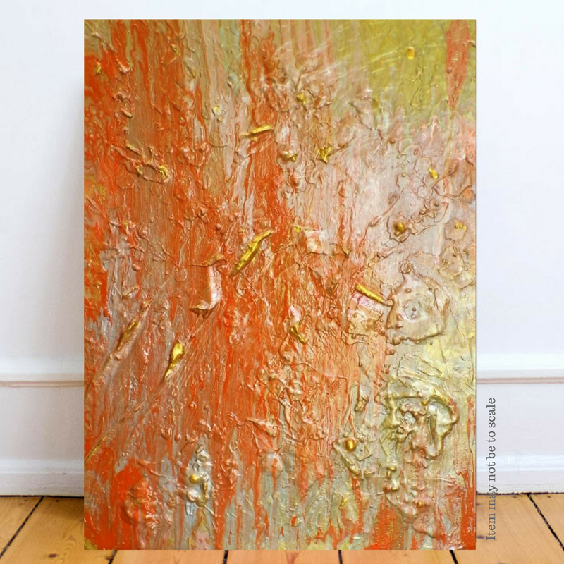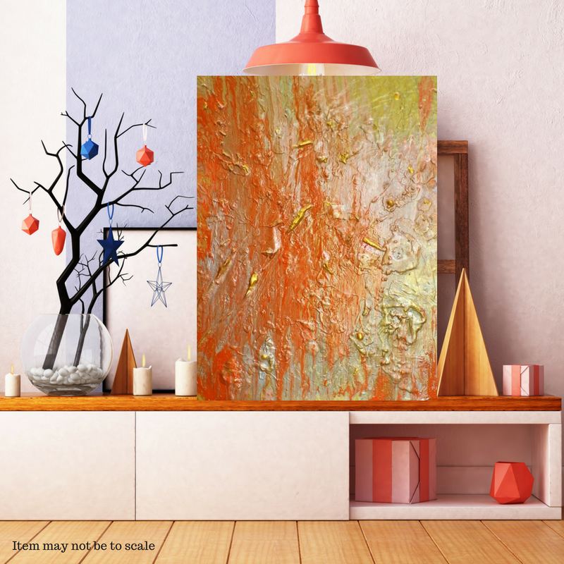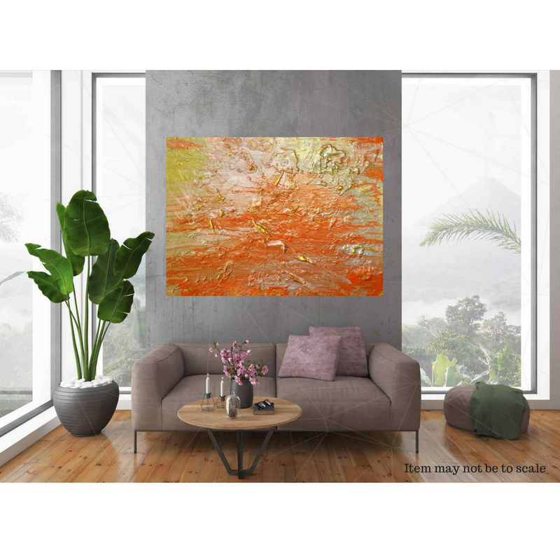 Enhance your home or office with this original* stunning vibrant abstract work of art. Rendered in acrylic textured paint, plaster, and other materials. * Only one produced! *** ABOUT THIS PAINTING *** ~ Size: 30” x 40” x 1.5” ~ Medium: Acrylic, Plaster, Gloss finish. ~ Hand painted. ~ Certificate included. ~ Main Colors: Old Gold, Cadmium Orange, Cadmium Red, Metallic Silver, Metallic Gold, Titanium White. Available Here: https://www.etsy.com/listing/583323784/large-orange-acrylic-wall-art-on-30-x-40?ref=shop_home_active_5&frs=1