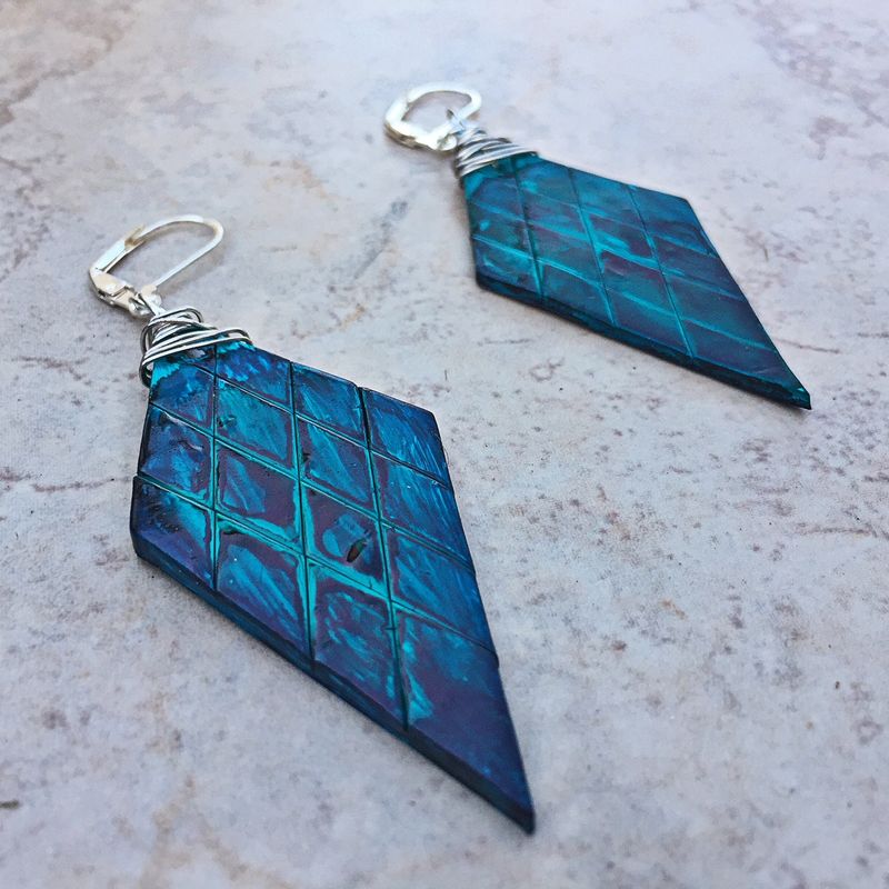 Large Statement Earrings, Blue Dangle Earrings, Polymer Clay Earrings