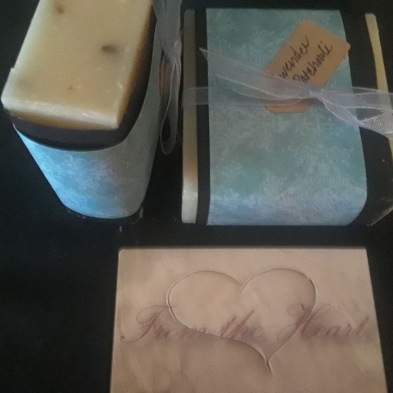 This is a beautiful handmade soap with a scent that will take you back to the 70's. The bar is wrapped and ready for gift giving, or a special gift for yourself. These are all natural soaps, with a beautiful scent. Indulge yourself in this wonderful soap. Much more complex than just lavender and patchouli. We added hints of sweet florals and exotic fruits. Contains lavender buds. Ingredients: Olive Oil, Coconut Oil, Soybean Oil, Corn Oil ,Sunflower Oil, Organic Shea Butter, Water, Lye, Lavender Buds and Fragrance. The bar is 3x3x1 and is 5 ounces in weight.