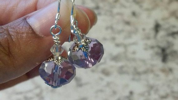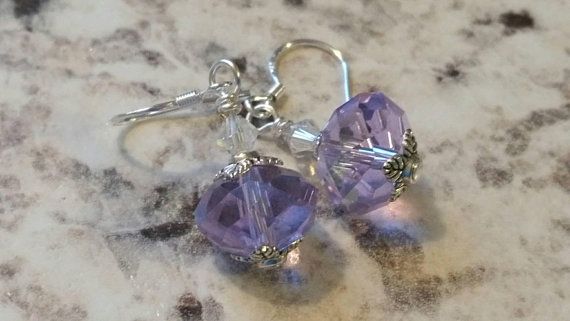 These elegant light purple earrings sparkle and shine. Topped with antique silver and crystal clear bicone. They are about 12mm in size and dangle about and inch and half from sterling silver ear hooks. They can be dressed up for formal wear or made casual for a fun and playful look. A great gift or treat for yourself. Included is an environment friendly earring card and decorative kraft bag sealed with my shop logo label. Check out my other items: www.jewelrybyginamonique.etsy.com https://www.etsy.com/listing/588374660/light-purple-glass-earrings-purple?ref=shop_home_active_4 Like me on Facebook: https://www.facebook.com/jewelrybyginamonique