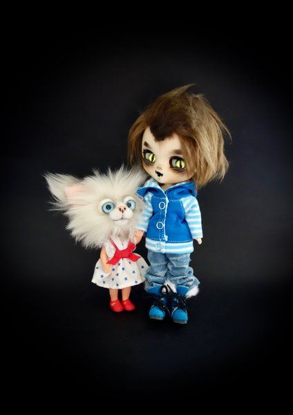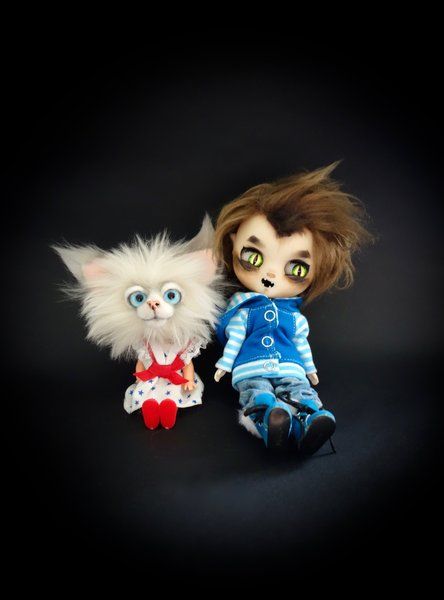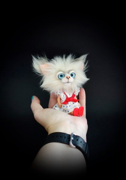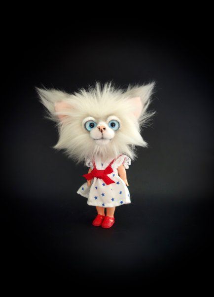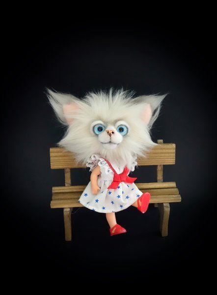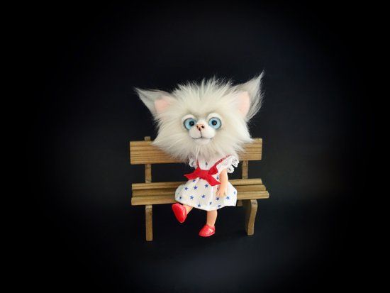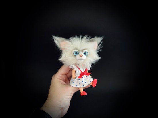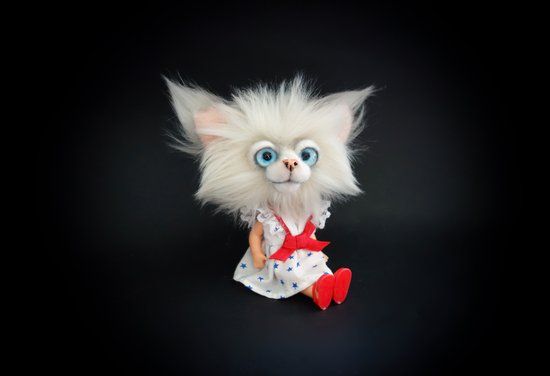 Nice to meet you, my name is Lily. I am a Cat doll with a head of beautiful faux fur. I can move my arms, legs and head. (my body and clothes are from a vintage doll) My maker gave me a bit of a vintage look. I'm 13 cm long while standing straight and 10 cm while sitting (without my ears). I'm a Cat doll for a collector and not a toy. My maker can not hold all her bears for herself so we are looking for a new home for me. Who will Take Me Home? Included: Cat Doll + certificate The Cat Doll comes from a non smoking environment. The colors can be a bit different because of different computer settings.