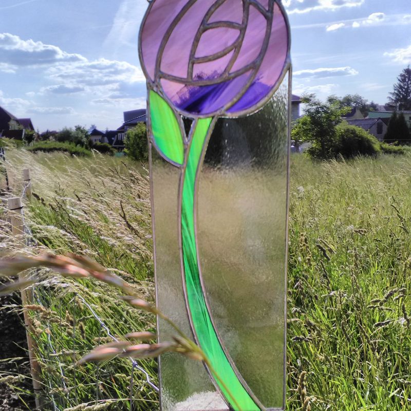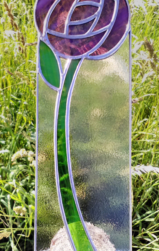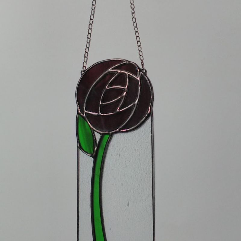 Art Nouveau stylised rose suncatcher. Charles Rennie Mackintosh style stained glass with a purple Glasgow Rose on a textured clear background, typical of the Scottish architect and designer, Mackintosh, from the early 1900s. SIZE 22 x 7 cm (8+3/4" x 2+3/4") GIFT IDEA A lovely window or wall decoration, suitable for any room in the house and would be an ideal housewarming, engagement, wedding or anniversary gift. COLOURS to complement your own interior design style and home decor. If you would like it to be made in different coloured glass, just send me a message. There is a chain attached for hanging and a window sucker hook is included. The solder lines are available in silver, black-patina or copper-patina. HANDMADE This is a made to order item so please allow 5-7 days for production. Please note that this item ships from the Czech Republic (EU) and all customs and tax duties, to non EU countries, are the responsibility of the buyer. Thank you for understanding.