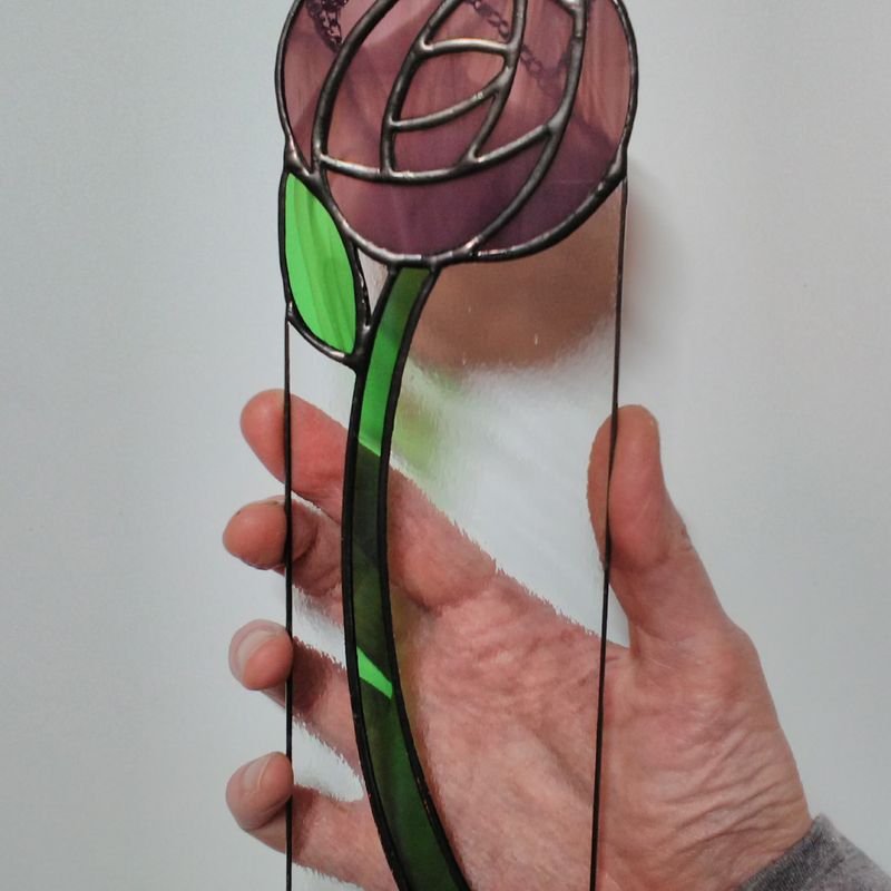 Scottish Mackintosh Rose Mirror, Art Nouveau Style, Stained Glass Wall Mirror 10x8" with Pink or Purple Glasgow Rose