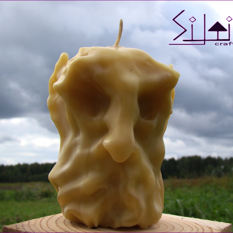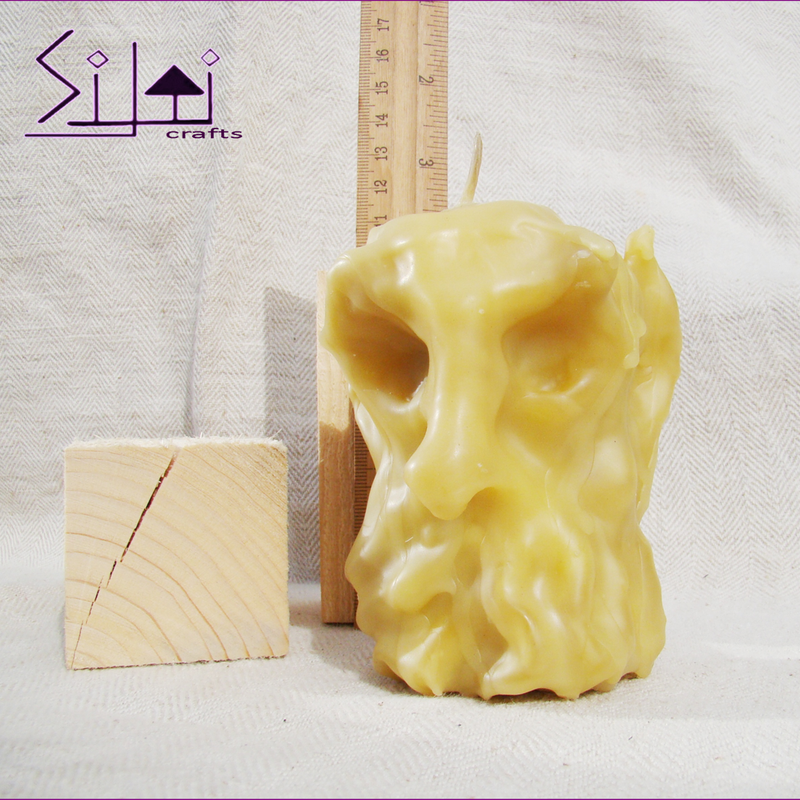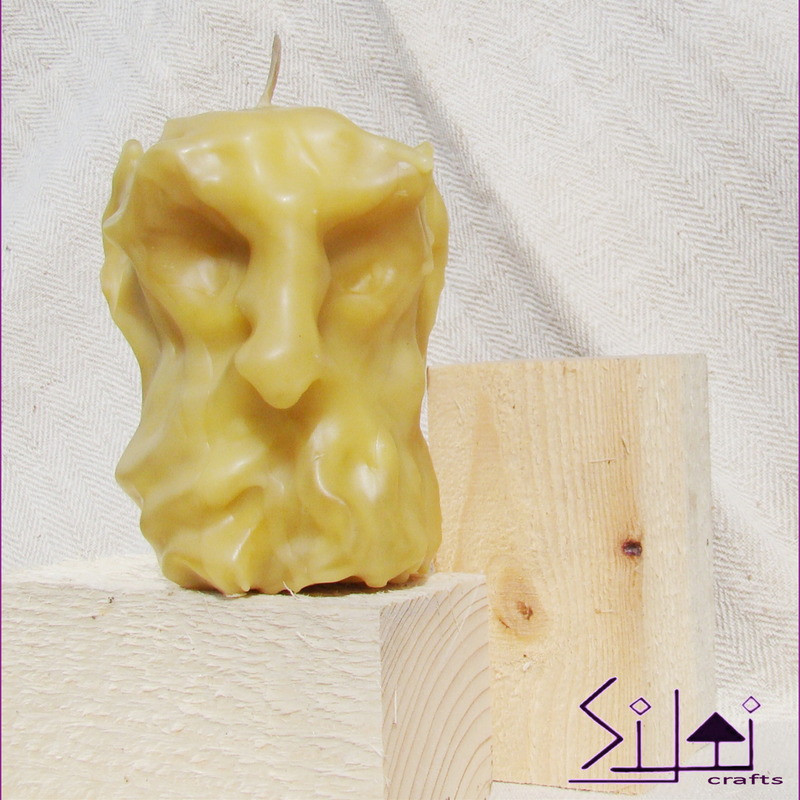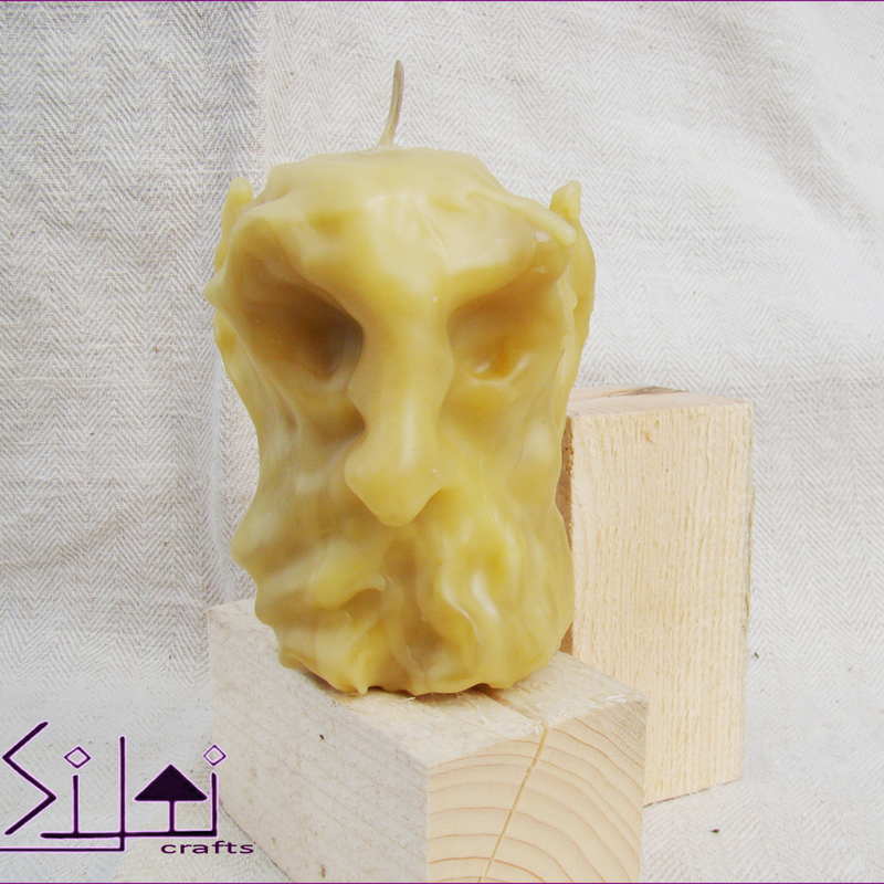 Hand-sculpted natural beeswax candle - embodiment of strength, wisdom and endurance. Decorative and fully functioning natural beeswax candle - one of a kind manly candle you won't find anywhere in the world. A gift gift for him who seeks his strength and power through fire and light. A gift for her who is standing tall in this world. For empowering people & for empowered people. This character will fill your home with cozy aroma of blooming meadows while the candle is burning. And if you put your thoughts in action before the fire meets the candle wick, it might bring you what it stands for: strength, wisdom, endurance & empowerment. The candlelight will not just give your eyes a view to rest upon, but soothe your soul as well. That's the mission of this hand-sculpted candle. This candle wasn't poured into silicone mold, but hand-carved and hand-sculpted melting the beeswax on live fire, so, it truly is one of a kind item that will never happen again. Dimensions: Height: 10cm/3.9" Diameter: 6cm/2.3" (in the widest point) Weight: 252g/8.8oz