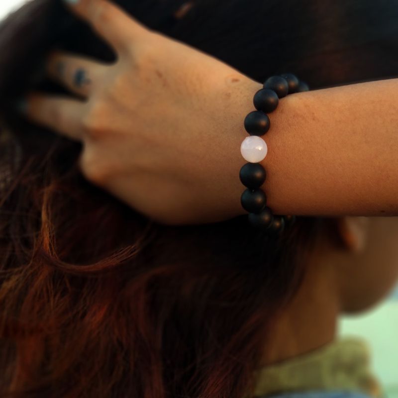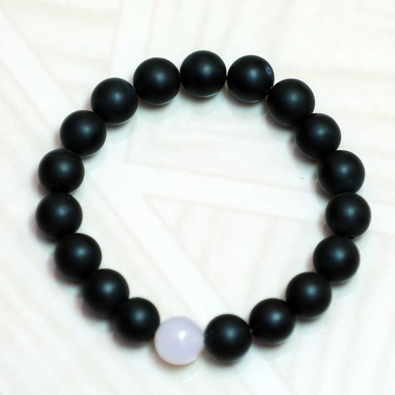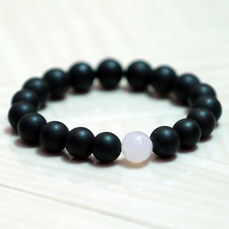 Matte Black & White Onyx Beaded Bracelet, Boyfriend Girlfriend Jewellery Single Piece, Men's jewellery, Yin Yang Bracelet