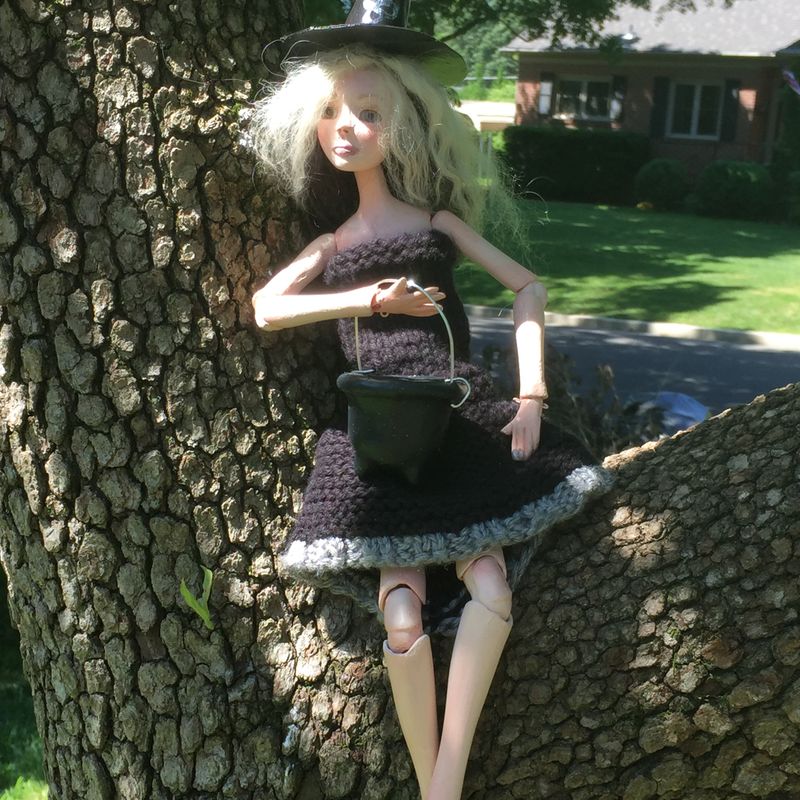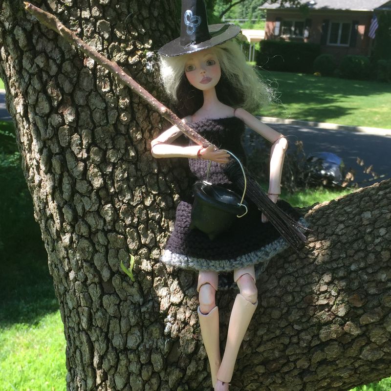 Meredith has sold-but I can make one that is similar. She will still be an OOAK doll. Please message mefor information. fairmeadowsoaps@gmail.com Meredith the Little Witch will put a spell on you. She is hand cast in resin. She was created by me from her original sculpt to being cast in resin. She is painted with acrylics and pastels and sealed. She comes as shown with a handmade natural stick broom, a polymer clay cauldron, cute polymer clay shoes, and a mod podged paper hat. Her dress is hand knitted without a pattern and will never be duplicated.She has resin eyes and a mohair wig. She is unique and will never be exactly the same as any of her sisters. She is fully articulated and loves to pose gently. She requires a doll stand. She is a piece of art, not a child’s toy. If you purchase her, you promise to never recast her.