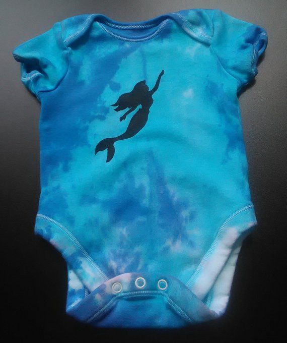 Who said tie dye was just for adults? Now your very small people can join in the colourful fun too! Super soft baby vest dyed in vibrant blue shades and finished off with a cute mermaid stencil. Item link; https://www.etsy.com/uk/listing/614019971/mermaid-baby-vest-sizes-newborn-to-36
