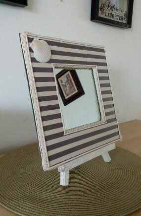 Decorated mirror on wooden stand can be nice decor for home or office or as a gift for many occasions. Inspired by summer :-) Unique. Handmade. Decorated with decorative printed paper, rope, wooden sticks and seashell. Dimensions 25 cm x 25 cm (9.8" x 9.8")