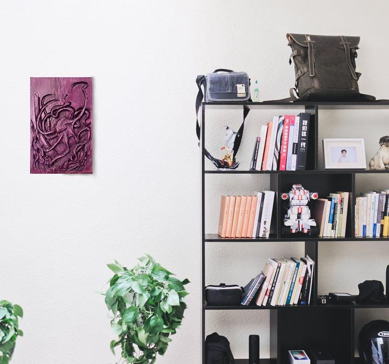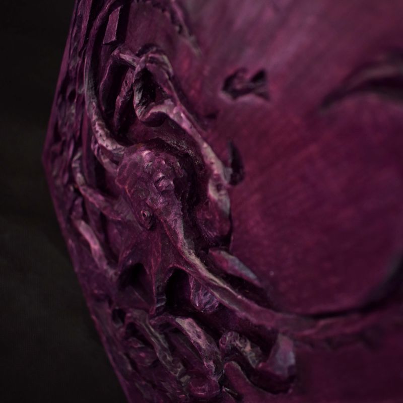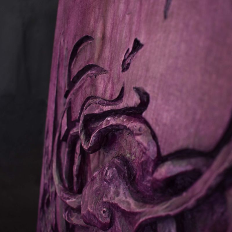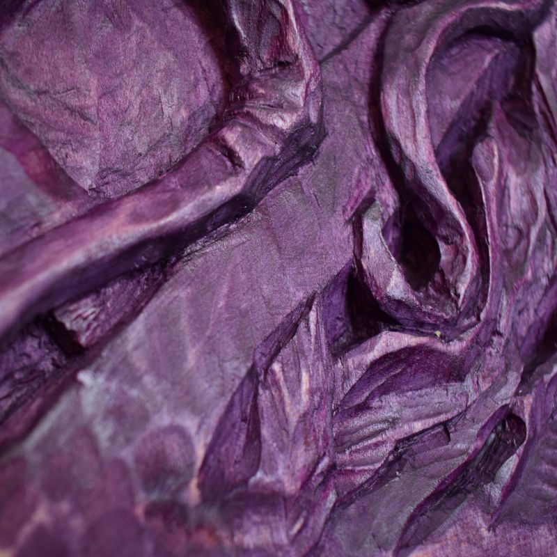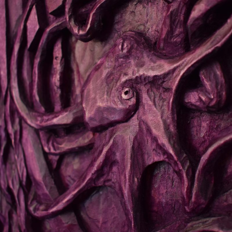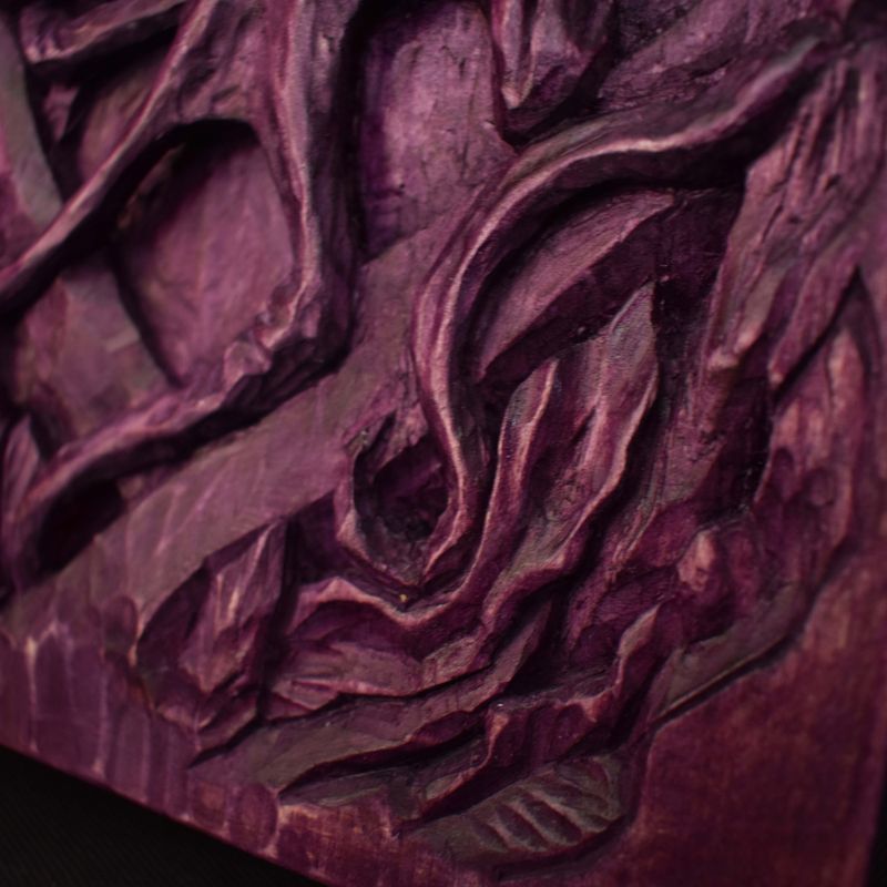 Octopus wood relief, handmade carving, basswood sculpture, purple