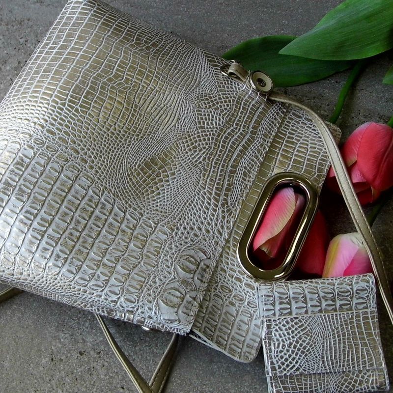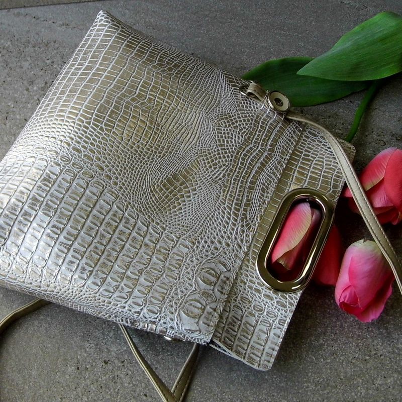 Off white handbag, White handmade vegan leather purse, Large purse with handles, Faux crocodile bag, Silver handbag, Unique design handbag