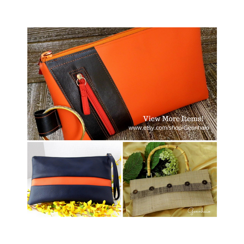 The 'Ajasco' is stylish, functional, and most definitely unique! You can dress this clutch up or down to fit with any occasion from, a day at the office to an evening out with friends. Approximate clutch size: (H) 10” (25.5 cm) x (W) 13 ½” (33.5 cm) Available from my Etsy shop: https://www.etsy.com/listing/532818469/orange-clutch-purse-vegan-leather-clutch?ref=shop_home_active_20 Please contact me if you have any questions. https://www.etsy.com/shop/Gennhaio
