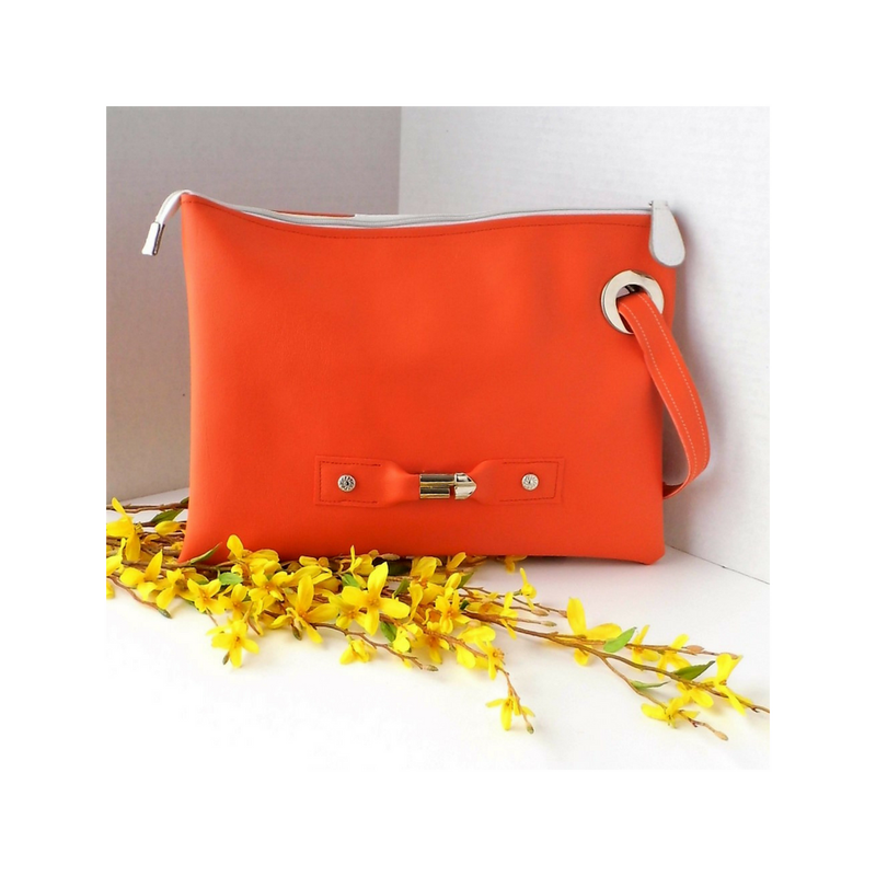 SOLD-Orange Clutch Purse, Vegan Leather Clutch, Envelope clutch purse, Faux leather wristlet