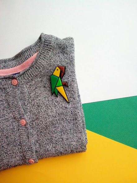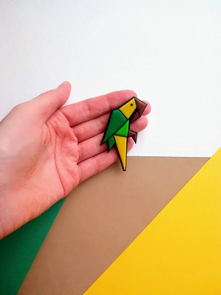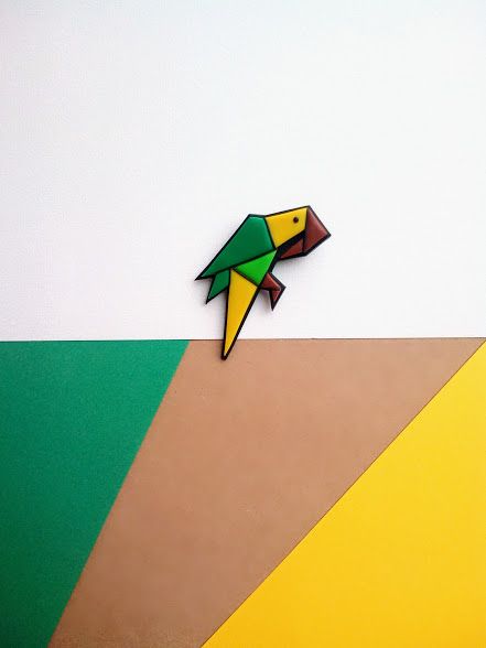 Origami style green and yellow macaw brooch made of polymer clay. A perfect accessory for Your coat, hat, a lovely cardigan or even for Your backpack. Formed of strict geometric shapes this brooch will be a bright still minimalistic accent of Your outfit. If You love origami and parrots, this piece of jewelry is just for You. Just dare to be noticed! SPECIFICATION of the brooch: - 100% handmade; - materials used: polymer clay, metal findings; - measurements: total length of the brooch ~6.7 cm (~2.6 in.), width at a widest point ~3 cm (~1.2 in.); - colour tones: black, green, yellow, brown. The colors can slightly differ from the photo because of photography lighting and monitor settings; - the brooch has a nice matte look.