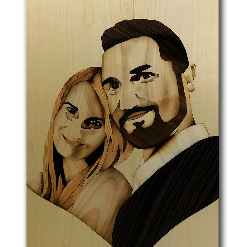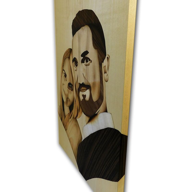 ORIGINAL Custom wedding portrait of wood marquetry woodworking by Andulino