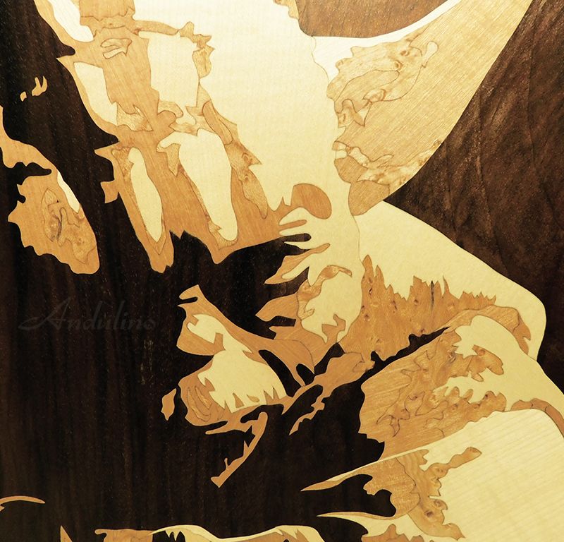 This marquetry has been sold, but I can make again any Shapes, size and colors can be changed, just le me know about these informations and I will make a custom marquetry just for you. It's a beautiful picture for everyones into home. Colors and contrasts may vary depending on your monitor and the difference between RGB and CMYK