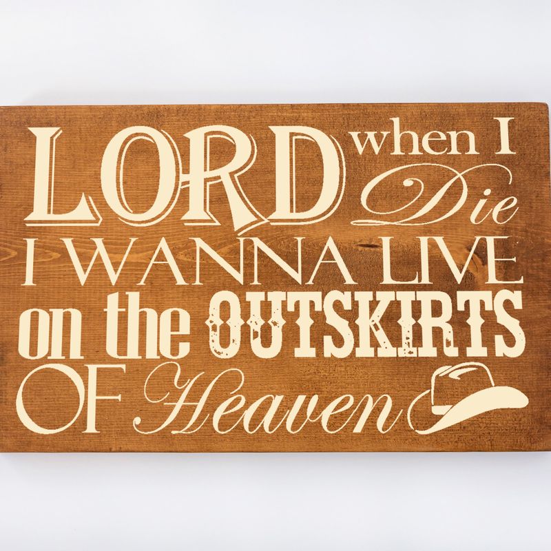 Our wood “Outskirts of Heaven” sign is the perfect addition to any home. At Someday Ranch Designs, we specialize in signs that use our ranch as inspiration! Perfect for living rooms, bedrooms, kitchens, offices, and entryways! These handcrafted signs also make fantastic gifts for those most special to you in your life! // Size: 12"tall, 18"wide - unframed // Background: Great American // Lettering: Beige // Customization for Stain and Vinyl Colors Available!! //Purchase Here: https://www.etsy.com/SomedayRanchDesigns1/listing/614866721/outskirts-of-heaven-customizable-signs